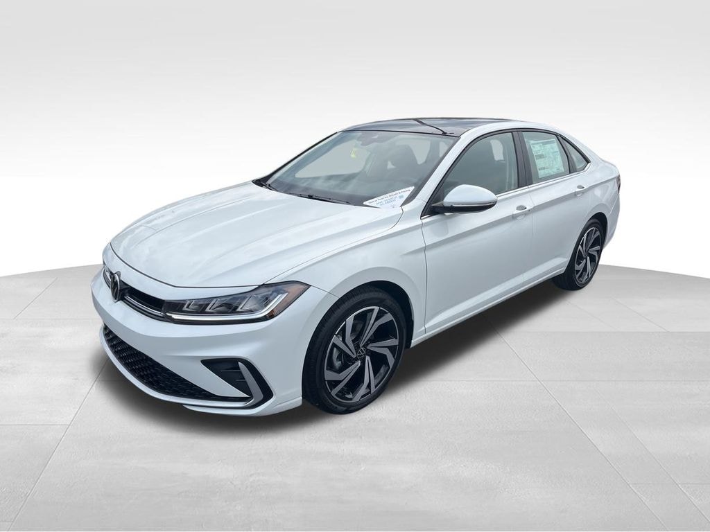 Opal White Pearl 2025 Volkswagen Jetta 1.5T SEL FWD 8-Speed Automatic with Tiptronic 1.5L I-4 DI DOHC Turbocharged Sevilla/Titan Black w/Vienna Leather Seat Trim, Auto-Dimming Rearview Mirror w/HomeLink Connect, First Aid Kit, Heavy Duty Trunk Liner w/VW CarGo Blocks, Rubber Monster Mats Kit (Set of 4), Sound System Substitution Credit, VW Care.