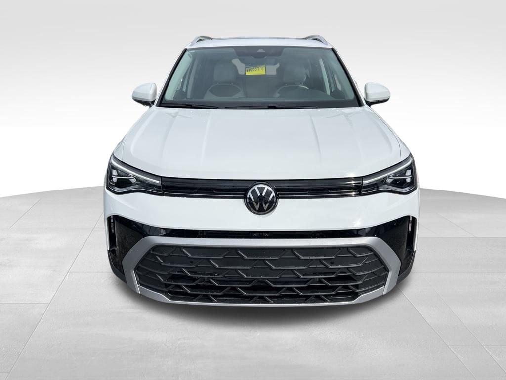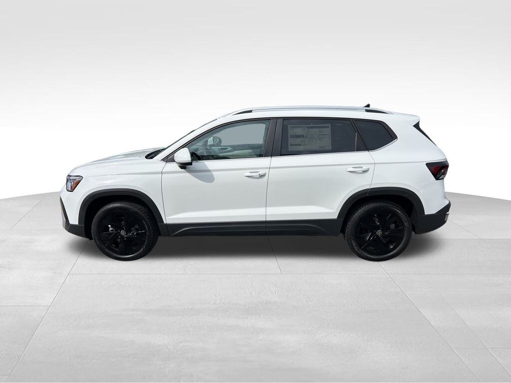 Pure White 2025 Volkswagen Taos 1.5T SE FWD 8-Speed Automatic with Tiptronic 1.5L I4 Turbocharged DOHC 16V LEV3-SULEV30 174hp Auto-Dimming Rearview Mirror w/HomeLink Connect, Black Wheel Package, Panoramic Sunroof Package, Rubber Mats Kit, VW Care, Wheels: 18" Black Painted Alloy.