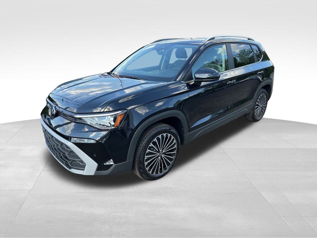 Deep Black Pearl 2025 Volkswagen Taos 1.5T SE FWD 8-Speed Automatic with Tiptronic 1.5L I4 Turbocharged DOHC 16V LEV3-SULEV30 174hp Auto-Dimming Rearview Mirror w/HomeLink Connect, Panoramic Sunroof Package, Rubber Mats Kit, VW Care.