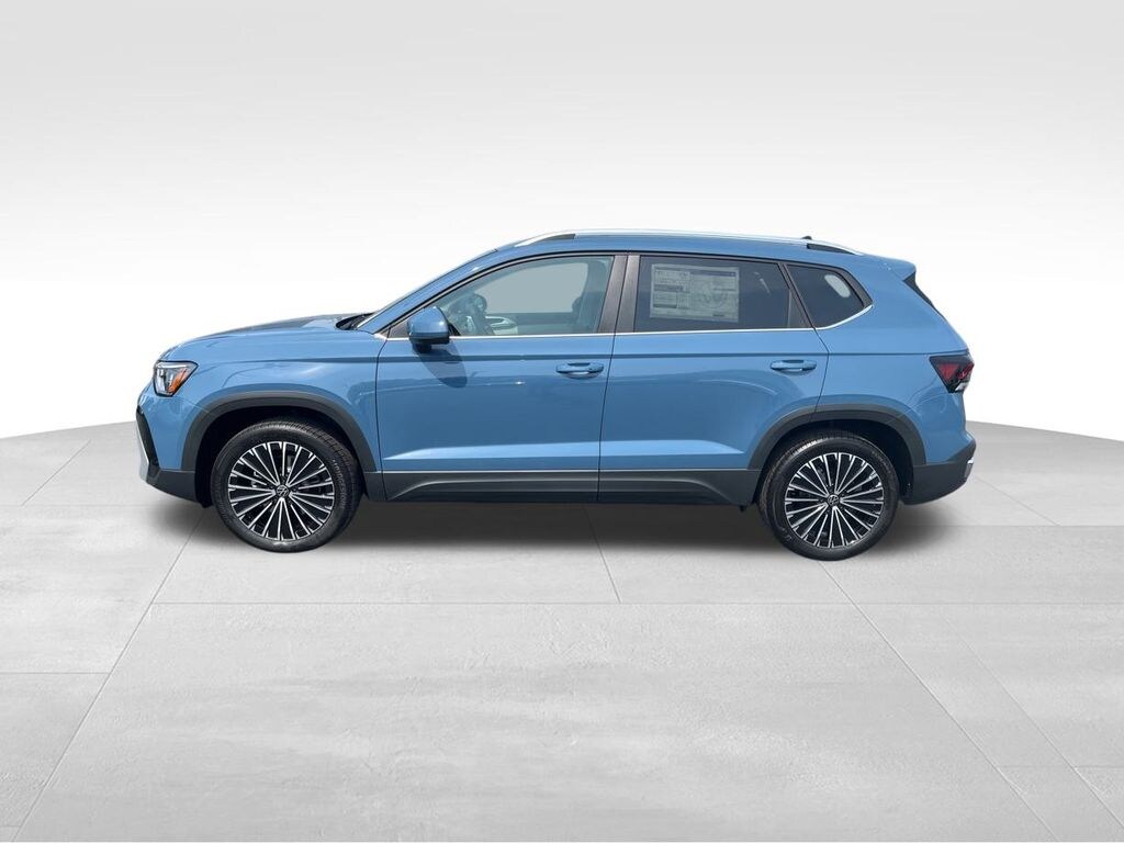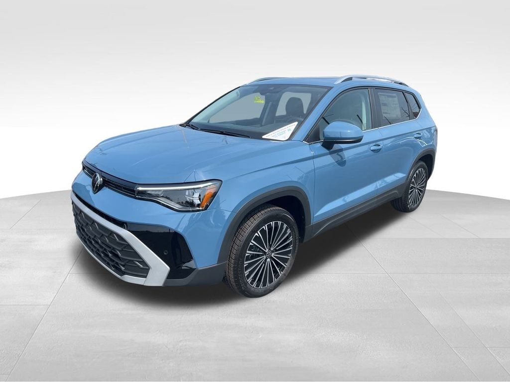 Monterey Blue Pearl 2025 Volkswagen Taos 1.5T SE FWD 8-Speed Automatic with Tiptronic 1.5L I4 Turbocharged DOHC 16V LEV3-SULEV30 174hp Auto-Dimming Rearview Mirror w/HomeLink Connect, Panoramic Sunroof Package, Rubber Mats Kit, VW Care.