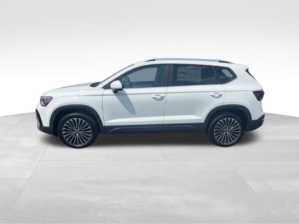Pure White 2025 Volkswagen Taos 1.5T SE FWD 8-Speed Automatic with Tiptronic 1.5L I4 Turbocharged DOHC 16V LEV3-SULEV30 174hp Auto-Dimming Rearview Mirror w/HomeLink Connect, Panoramic Sunroof Package, Rubber Mats Kit, VW Care.