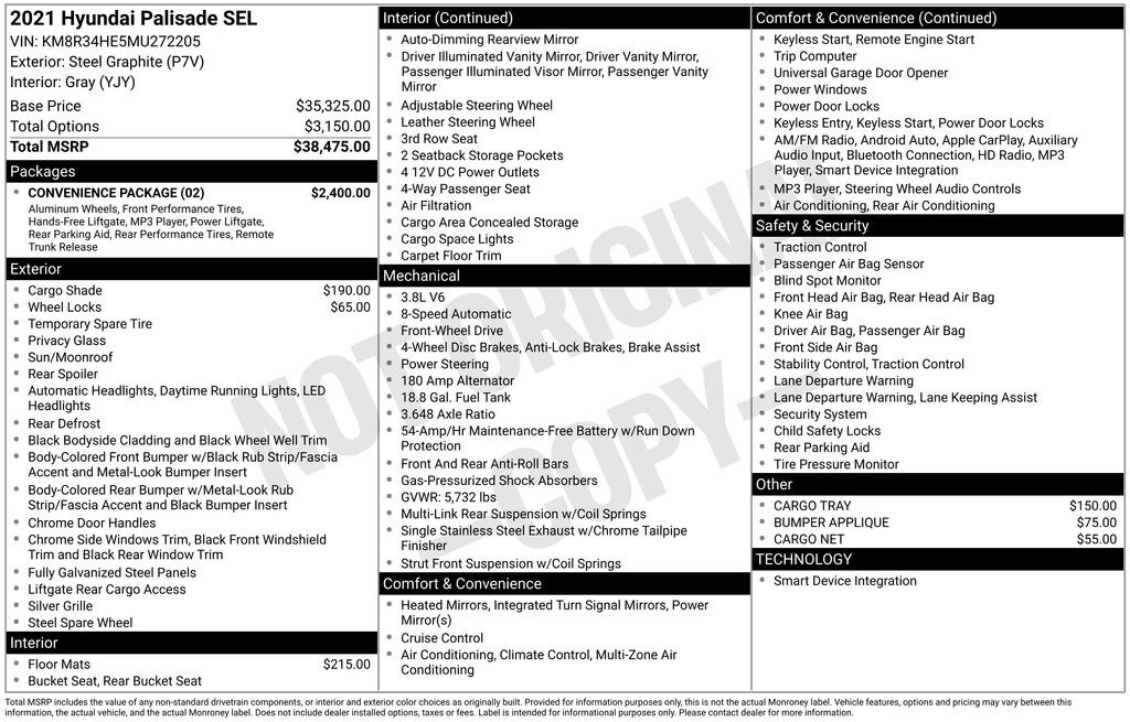 Carlock Volkswagen of North Nashville is pumped up to offer this outstanding-looking 2021 Hyundai Palisade in Steel Graphite This vehicle has passed our comprehensive inspection.