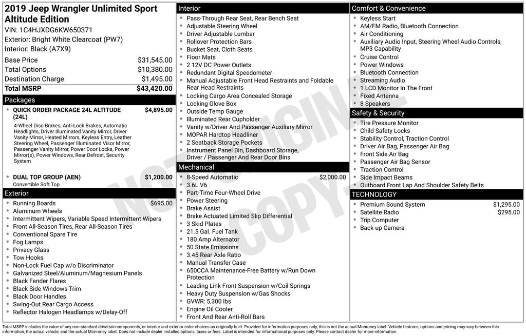 Imagine the thrill of the open road and the freedom to explore the great outdoors. With the 2019 Jeep Wrangler Unlimited Sport Altitude, the possibilities are endless. Experience the unparalleled capability and refined style that make this Jeep a true icon in the SUV world.