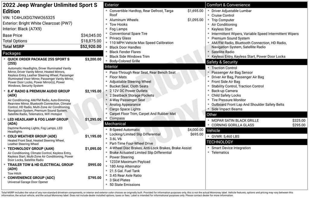 Carlock Volkswagen of North Nashville is pleased to offer this beautiful-looking and fun 2022 Jeep Wrangler in Bright White Clearcoat This vehicle has passed our comprehensive inspection.