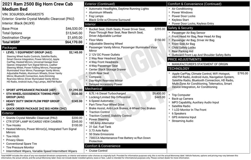 Whether you're hauling heavy payloads, towing a trailer, or navigating rough terrain, this 2021 Ram 2500 Big Horn has the capability, technology, and style to get the job done. Experience the difference of driving a true heavy-duty workhorse - schedule a test drive today and see how this powerful pickup can transform your driving experience.