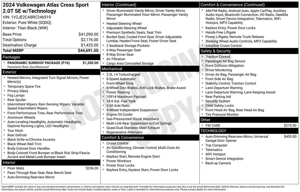 2024 Volkswagen Atlas Cross Sport 2.0T SE w/Technology